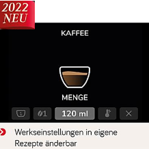 • Individualisierbare Rezepte für Espresso,