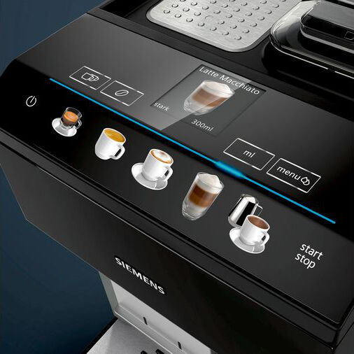 Einfache Handhabung und alle Optionen auf einen Blick – dank des farbigen und intuitiven coffeeSelect Displays können Sie Ihren Wunschkaffee schnell und bedienerfreundlich zubereiten. So einfach ist Kaffeegenuss mit Siemens.