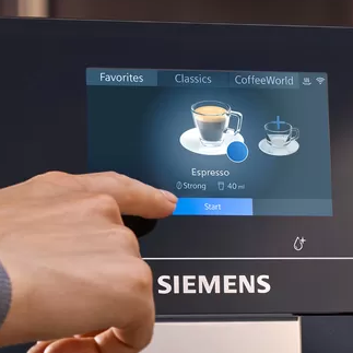Einfache Handhabung und alle Optionen auf einen Blick – dank des farbigen und intuitiven coffeeSelect Displays können Sie Ihren Wunschkaffee schnell und bedienerfreundlich zubereiten. So einfach ist Kaffeegenuss mit Siemens. Ob Latte Macchiato, cremiger Cappuccino oder Espresso, dank der oneTouch Function mit einem Knopfdruck perfekten Kaffee genießen. Alle Kaffee- und Milchspezialitäten ganz einfach und nach Ihren Wünschen zubereitet.