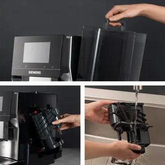 Für eine hygienische Reinigung einfach die Brüheinheit abnehmen, unter fließendem Wasser spülen und dann wieder einsetzen. So wird gleichbleibend guter Geschmack gewährleistet, die Gerätelebensdauer verlängert, und Sie können jederzeit das pure Aroma feinster Kaffeespezialitäten genießen.